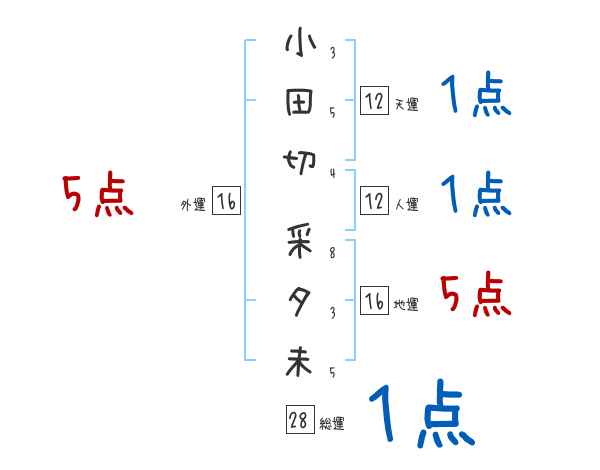 小田切采夕未さんの画数の鑑定結果