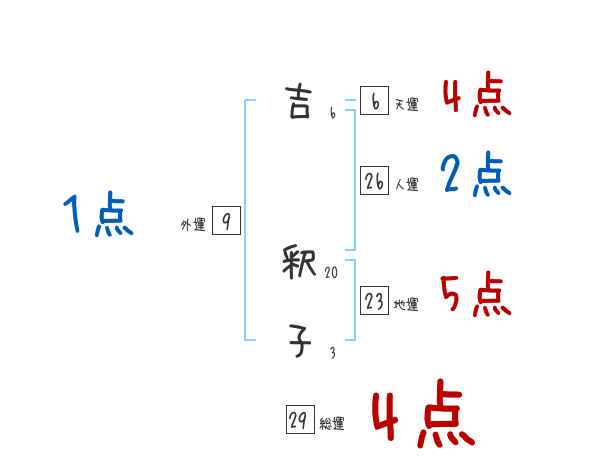吉釈子さんの画数の鑑定結果