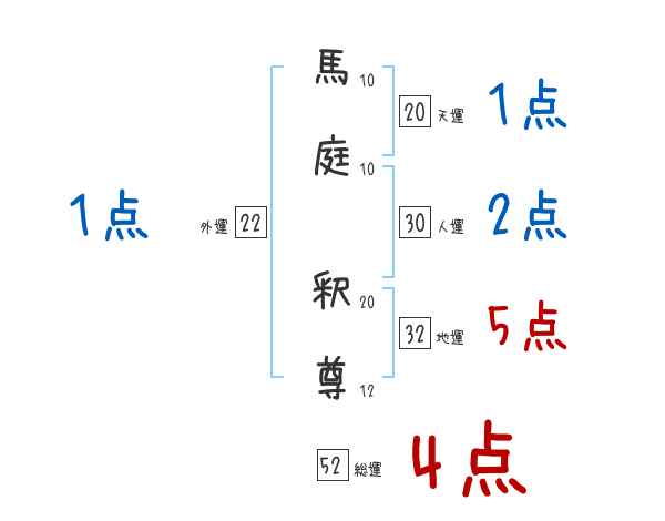 家系が持つ宿命的な運勢を表します。祖先から受け継いだ苗字ですので自分の力が及びません。家柄を象徴します。