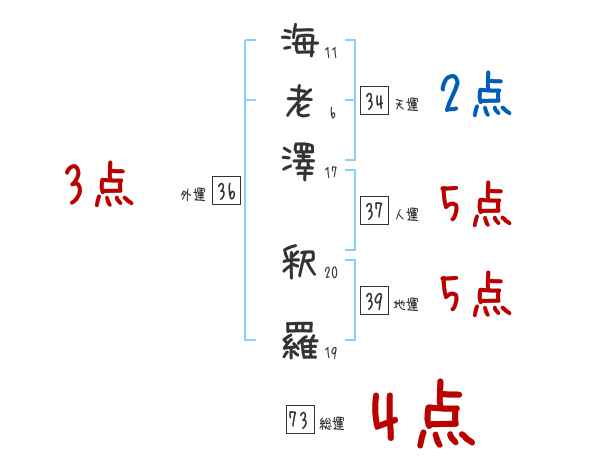 海老澤釈羅さんの画数の鑑定結果