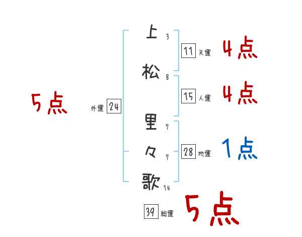 上松里々歌さんの画数の鑑定結果