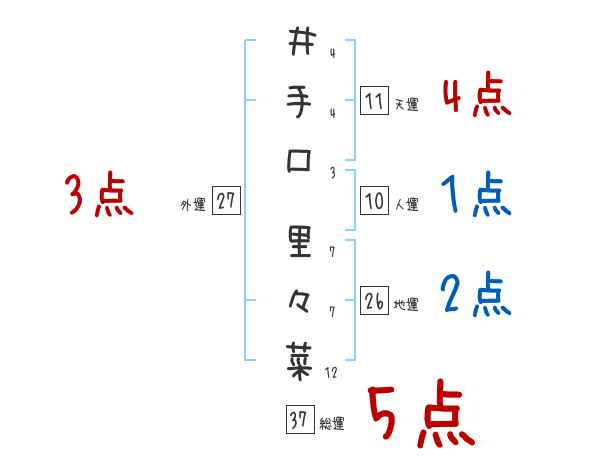 井手口里々菜さんの画数の鑑定結果