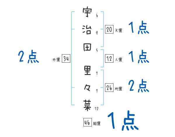 宇治田里々菜さんの画数の鑑定結果