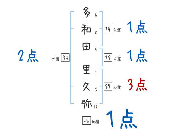多和田里久弥さんの画数の鑑定結果