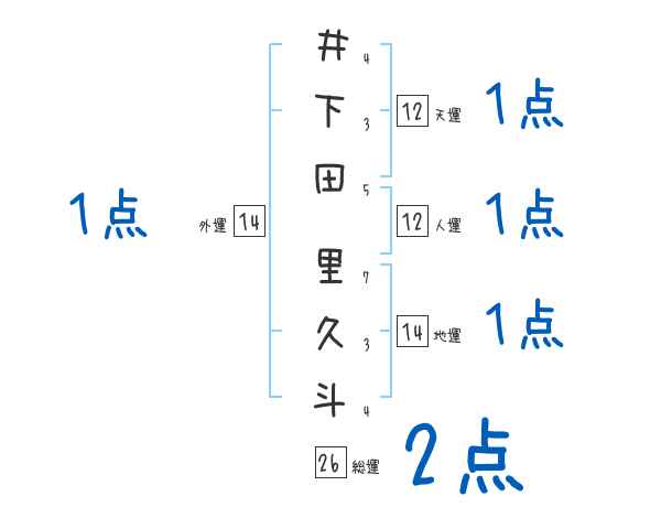 総運![]() | 井下田里久斗さんの総運は26画の2つ星!波瀾万丈かも。信頼できる人を大事にしましょう。 あなたの人生を表す1番重要な運勢です。生涯を通じて影響する総合運となり、主に50歳以降の晩年期に影響を及ぼします。 |