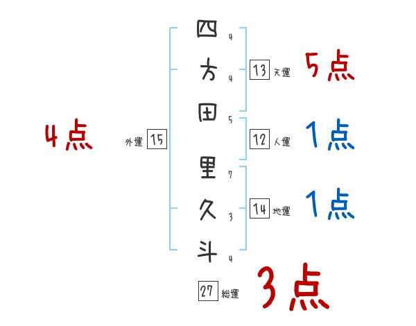 四方田里久斗さんの画数の鑑定結果