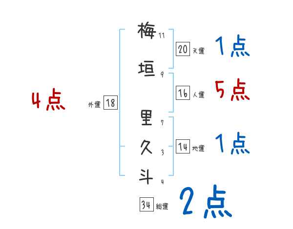 梅垣里久斗さんの画数の鑑定結果