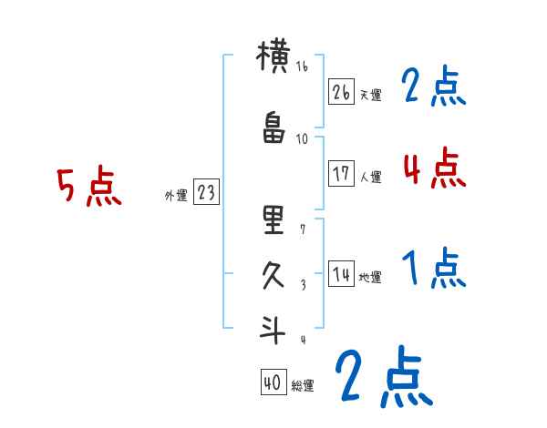 外運![]() | 横畠里久斗さんの外運は23画の5つ星!想像力に優れ活力がある。一代で成功し名誉を手に入れる。 生活面を象徴する運勢です。外部から受ける影響力を表し、結婚運、家庭運や職場、環境への順応性を表します。 |