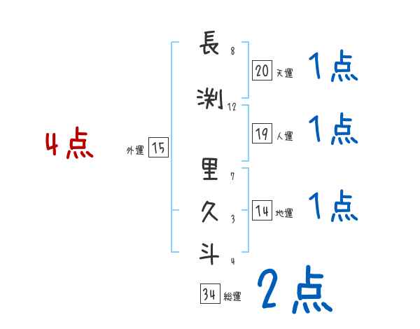 長渕里久斗さんの画数の鑑定結果