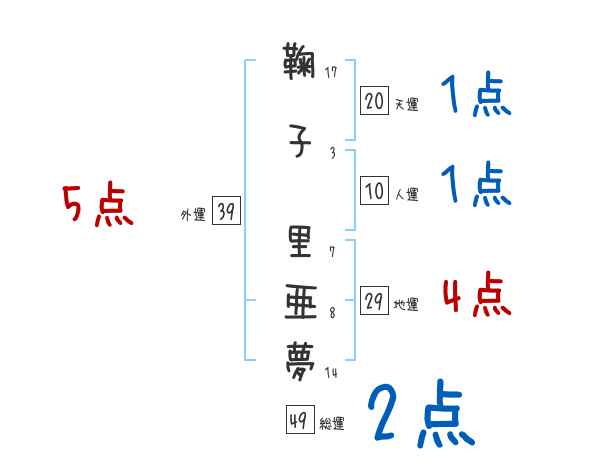 鞠子里亜夢さんの画数の鑑定結果