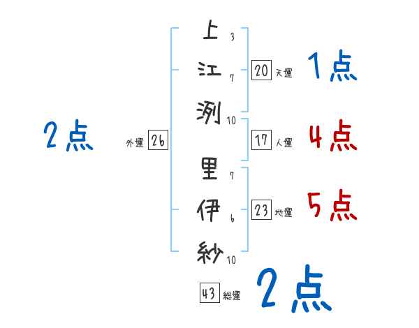 上江洌里伊紗さんの画数の鑑定結果