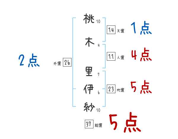 桃木里伊紗さんの画数の鑑定結果
