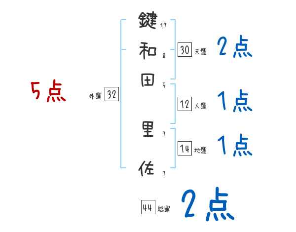 鍵和田里佐さんの画数の鑑定結果