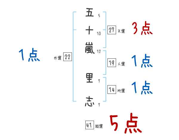 五十嵐里志さんの画数の鑑定結果
