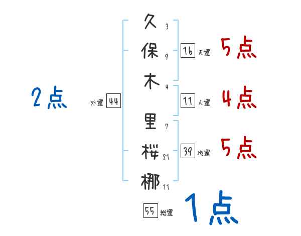 久保木里桜梛さんの画数の鑑定結果