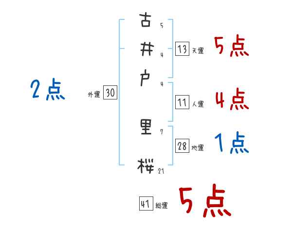 古井戸里桜さんの画数の鑑定結果