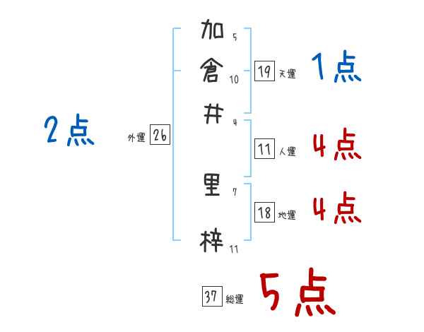 総運![]() | 加倉井里梓さんの総運は37画の5つ星!努力家で順応性に優れる。現実的な考え方ができ忠実に物事をこなす。 あなたの人生を表す1番重要な運勢です。生涯を通じて影響する総合運となり、主に50歳以降の晩年期に影響を及ぼします。 |