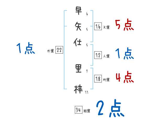 天運![]() | 早矢仕里梓さんの天運は16画の5つ星!人望が厚く大きく発展する。逆転成功が見える。 家系が持つ宿命的な運勢を表します。祖先から受け継いだ苗字ですので自分の力が及びません。家柄を象徴します。 |