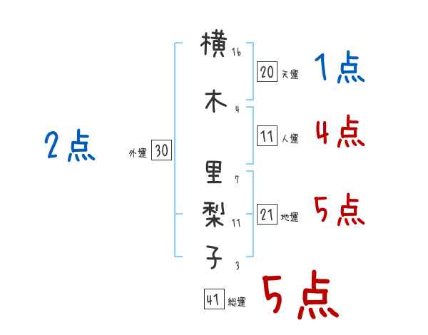 総運![]() | 横木里梨子さんの総運は41画の5つ星!大志を抱き、目標に向かって実力を発揮し達成する。温和な性格。 あなたの人生を表す1番重要な運勢です。生涯を通じて影響する総合運となり、主に50歳以降の晩年期に影響を及ぼします。 |