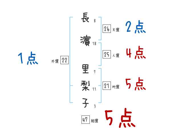 長濵里梨子さんの画数の鑑定結果