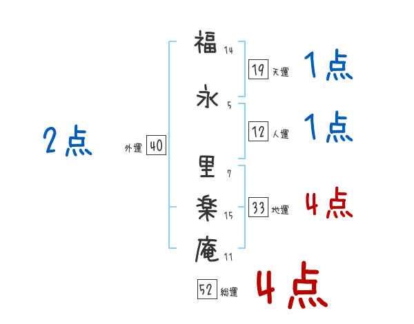 家系が持つ宿命的な運勢を表します。祖先から受け継いだ苗字ですので自分の力が及びません。家柄を象徴します。