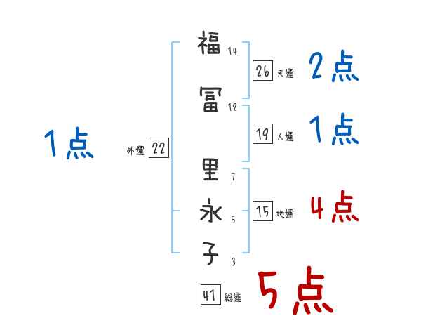 天運![]() | 福冨里永子さんの天運は26画の2つ星!波瀾万丈かも。信頼できる人を大事にしましょう。 家系が持つ宿命的な運勢を表します。祖先から受け継いだ苗字ですので自分の力が及びません。家柄を象徴します。 |