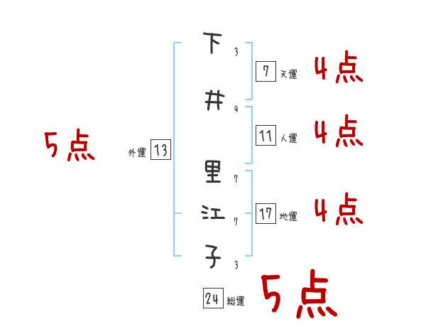 下井里江子さんの画数の鑑定結果