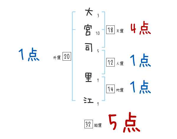 総運![]() | 大宮司里江さんの総運は32画の5つ星!柔軟性があり成功する。チャンスが多く金運が良い。 あなたの人生を表す1番重要な運勢です。生涯を通じて影響する総合運となり、主に50歳以降の晩年期に影響を及ぼします。 |
