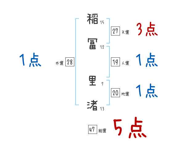 総運![]() | 稲冨里渚さんの総運は47画の5つ星!実力が開花し発展する円満な人生。財に恵まれる。 あなたの人生を表す1番重要な運勢です。生涯を通じて影響する総合運となり、主に50歳以降の晩年期に影響を及ぼします。 |