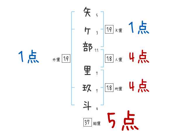 矢ヶ部里玖斗さんの画数の鑑定結果