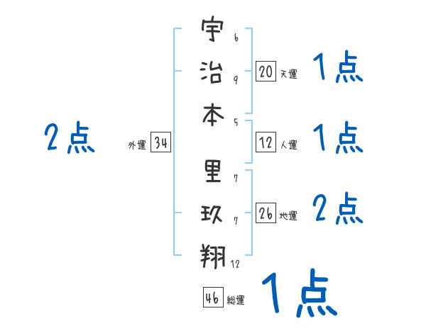 宇治本里玖翔さんの画数の鑑定結果