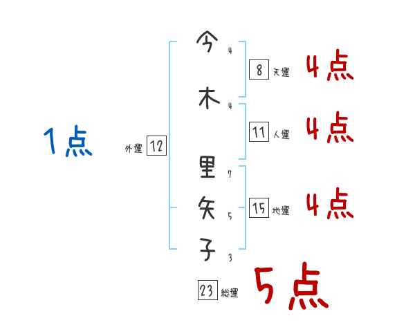 今木里矢子さんの画数の鑑定結果