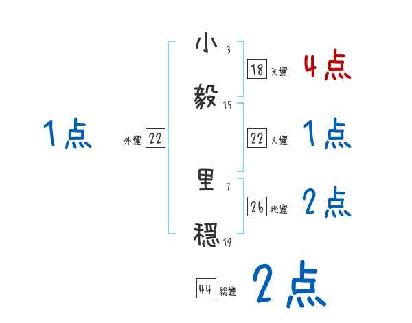 小毅里穏さんの画数の鑑定結果