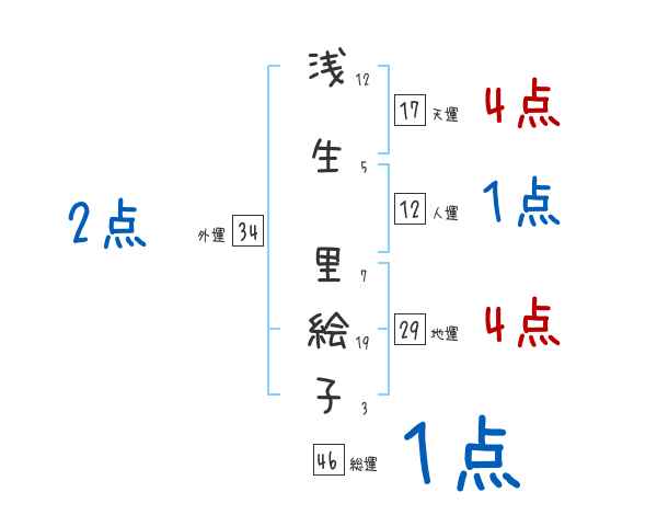 浅生里絵子さんの画数の鑑定結果