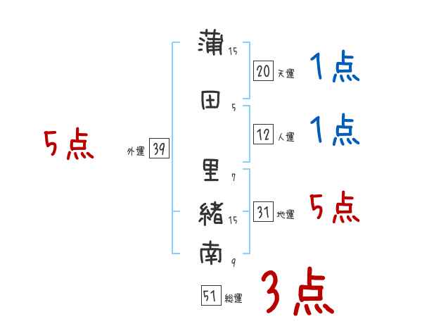 蒲田里緒南さんの画数の鑑定結果