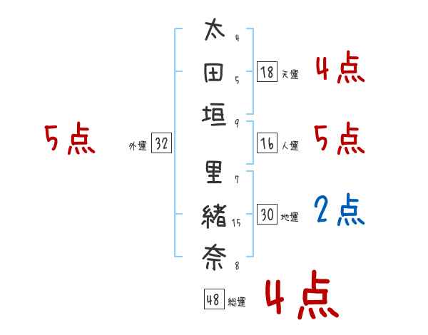 太田垣里緒奈さんの画数の鑑定結果