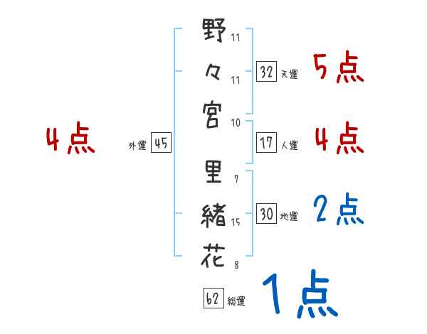 野々宮里緒花さんの画数の鑑定結果
