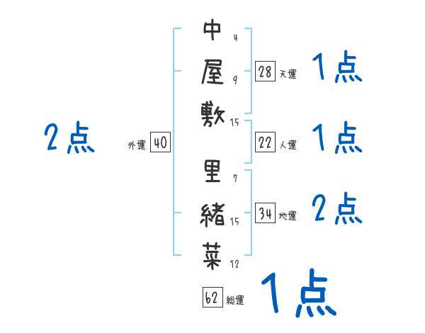 中屋敷里緒菜さんの画数の鑑定結果