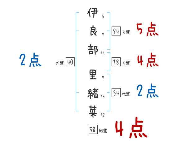伊良部里緒菜さんの画数の鑑定結果