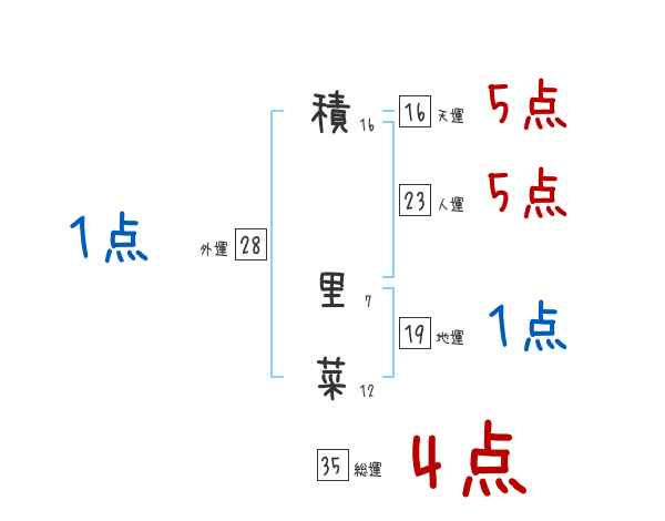 積里菜さんの画数の鑑定結果