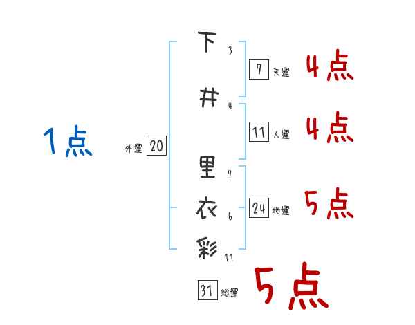 下井里衣彩さんの画数の鑑定結果