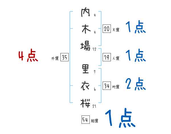 内木場里衣桜さんの画数の鑑定結果