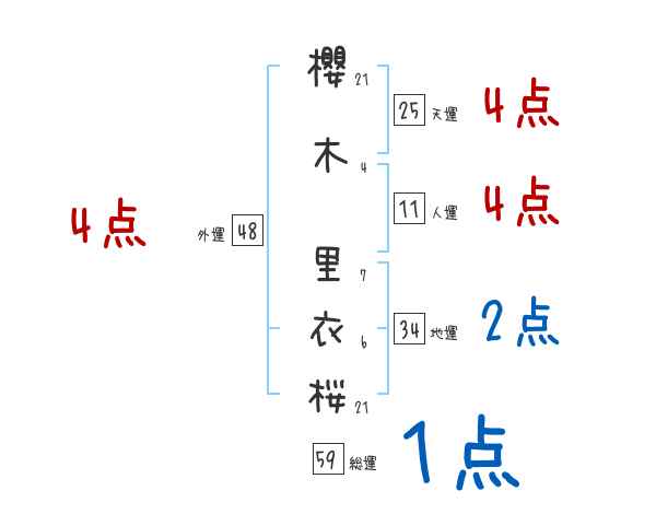 天運![]() | 櫻木里衣桜さんの天運は25画の4つ星!個性があり才能があふれる。強運の持ち主で発展する。 家系が持つ宿命的な運勢を表します。祖先から受け継いだ苗字ですので自分の力が及びません。家柄を象徴します。 |