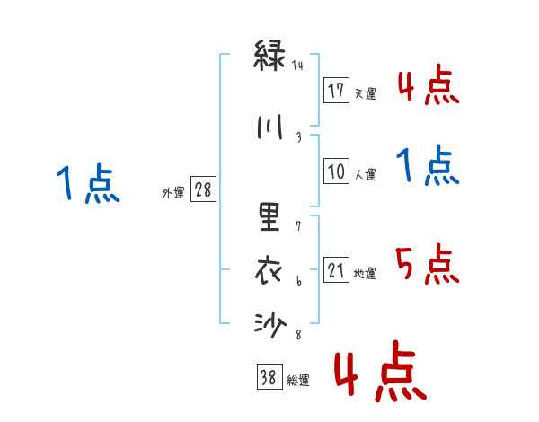 外運![]() | 緑川里衣沙さんの外運は28画の1つ星!家庭環境に注意。スポーツで活躍できる能力があるかも。 生活面を象徴する運勢です。外部から受ける影響力を表し、結婚運、家庭運や職場、環境への順応性を表します。 |