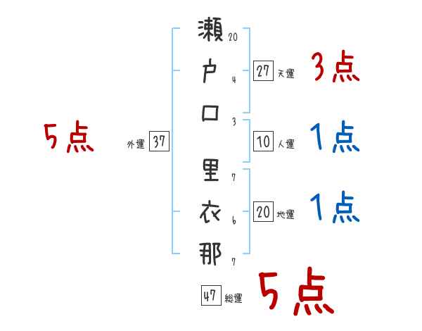 瀬戸口里衣那さんの画数の鑑定結果