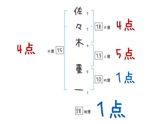 総運![]() | 佐々木重一さんの総運は28画の1つ星!家庭環境に注意。スポーツで活躍できる能力があるかも。 あなたの人生を表す1番重要な運勢です。生涯を通じて影響する総合運となり、主に50歳以降の晩年期に影響を及ぼします。 |