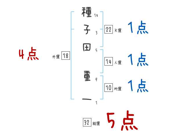 総運![]() | 種子田重一さんの総運は32画の5つ星!柔軟性があり成功する。チャンスが多く金運が良い。 あなたの人生を表す1番重要な運勢です。生涯を通じて影響する総合運となり、主に50歳以降の晩年期に影響を及ぼします。 |