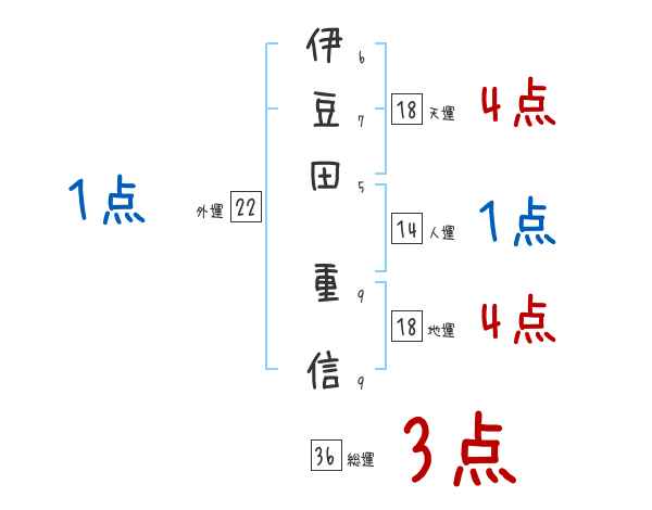 天運![]() | 伊豆田重信さんの天運は18画の4つ星!情熱的で剛気。忍耐力があり信頼される。 家系が持つ宿命的な運勢を表します。祖先から受け継いだ苗字ですので自分の力が及びません。家柄を象徴します。 |