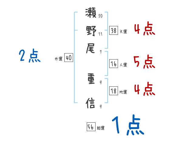 瀬野尾重信さんの画数の鑑定結果