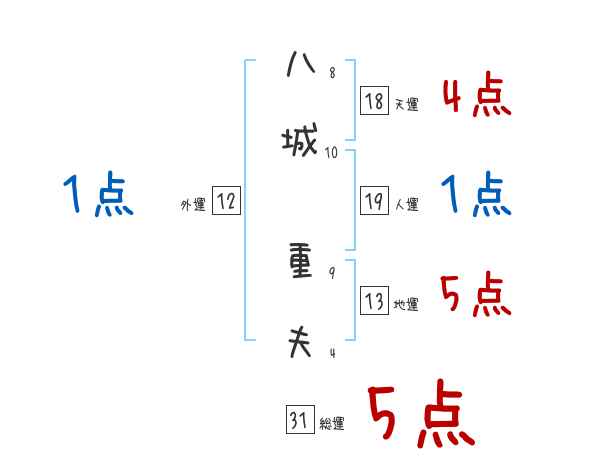 八城重夫さんの画数の鑑定結果
